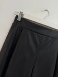 Pantalón tipo culotte de polipiel en color negro. Tiene goma en la cintura por la parte de atrás y bolsillos laterales.