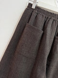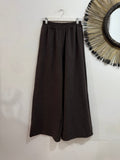 Pantalón de corte recto en color marrón chocolate jaspeado. Es súper calentito y tiene goma en la cintura, se ajusta genial. Tiene bolsillos laterales y bolsillos en parte trasera.