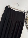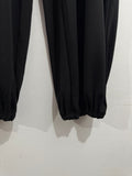 Pantalón fluido de punto de seda en color negro. Lleva cinturilla elástica, es bombacho y lleva goma en los tobillos.
