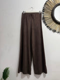 Pantalón de Antelina en marrón chocolate. Es de corte recto y tiene goma en la cintura, se adapta genial.